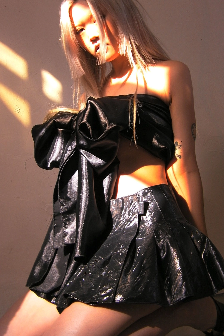 은은한 광택의 마이크로 미니 플리츠 스커트.